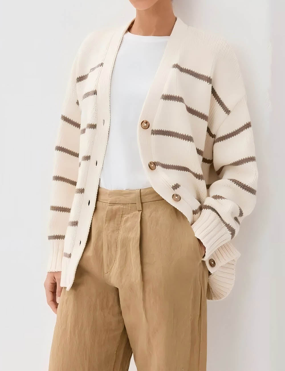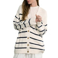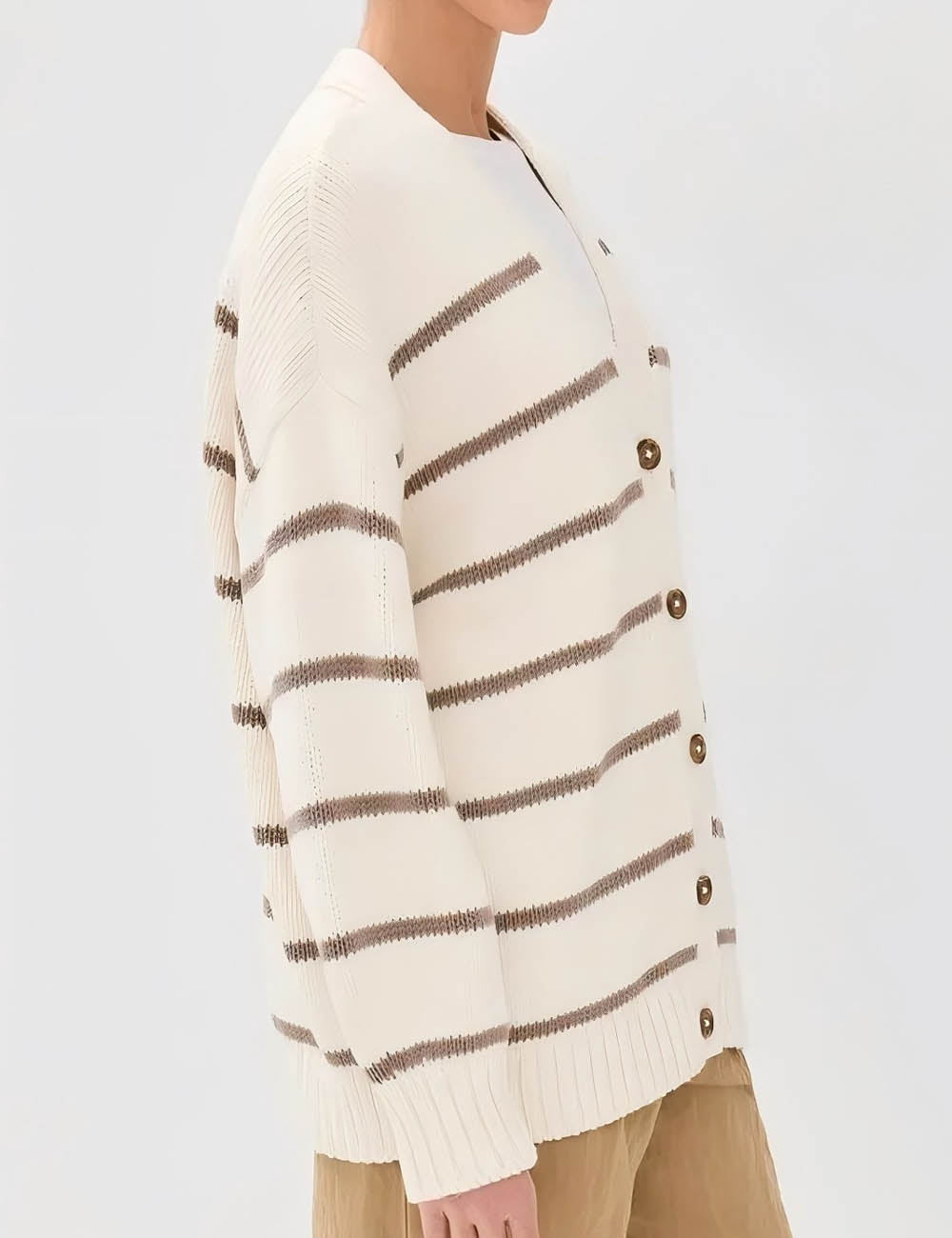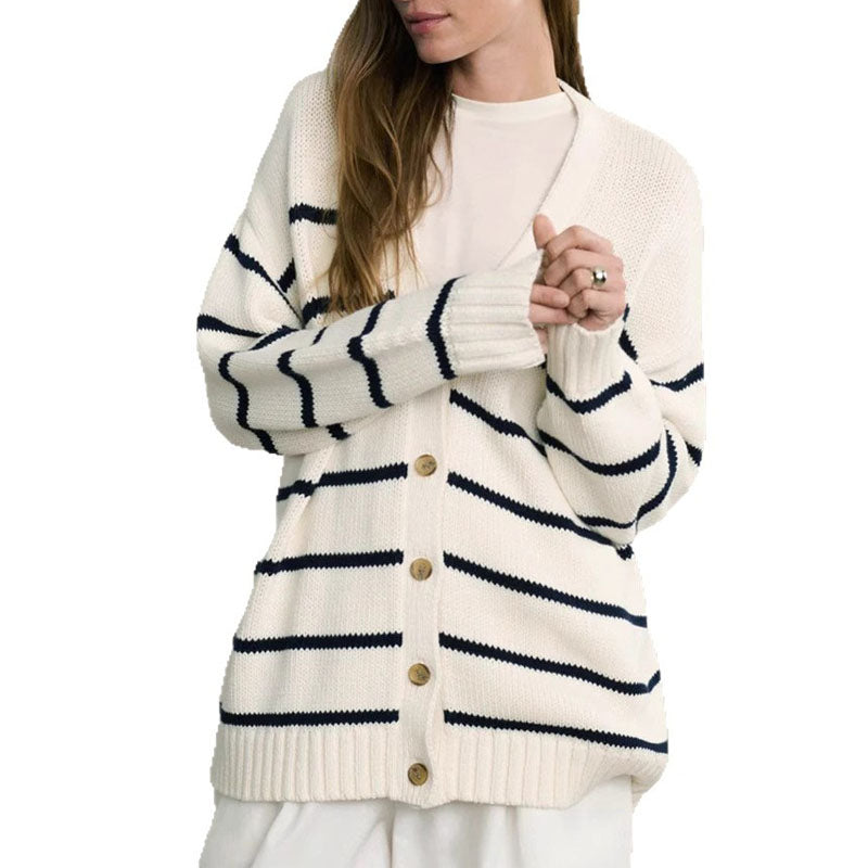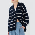 Striped V-Neck Color Block Button Down Cardigan DP25G975