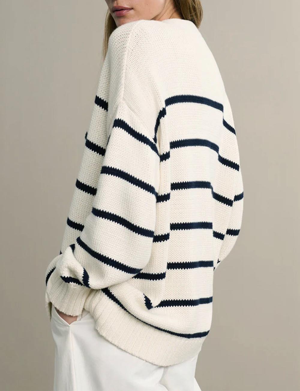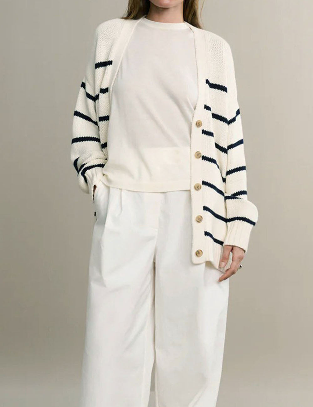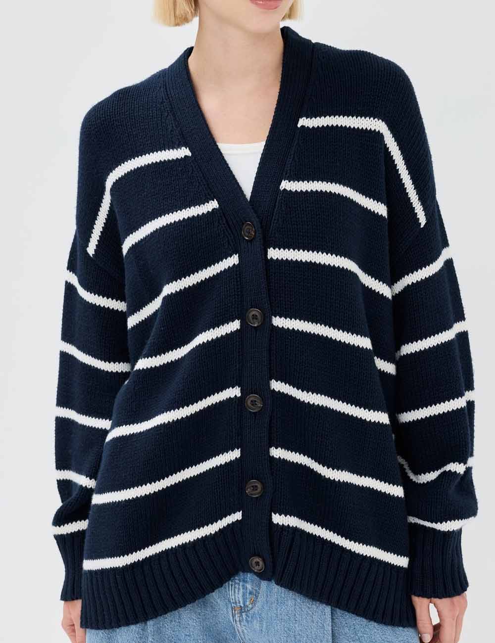 Striped V-Neck Color Block Button Down Cardigan DP25G975