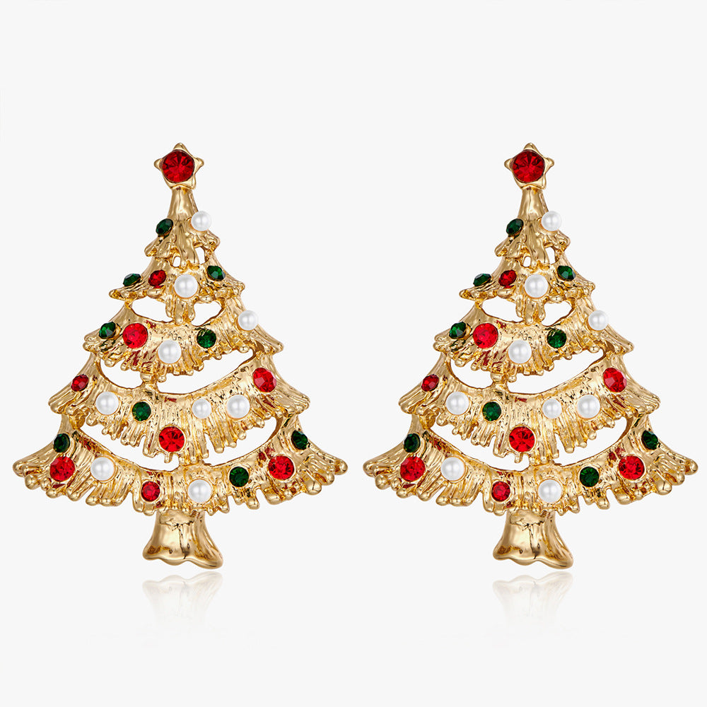 Stylish Hollow Rhinestone Christmas Tree Dangle Earrings DP25G792