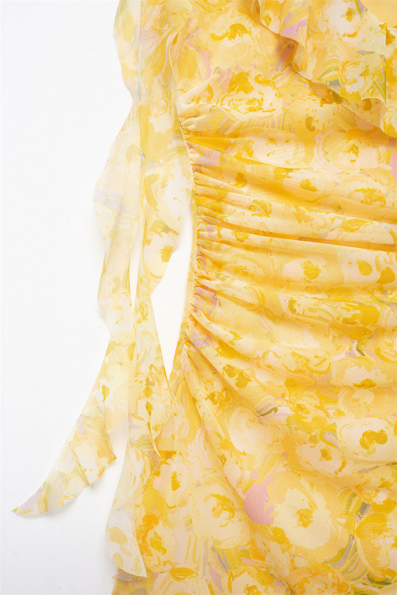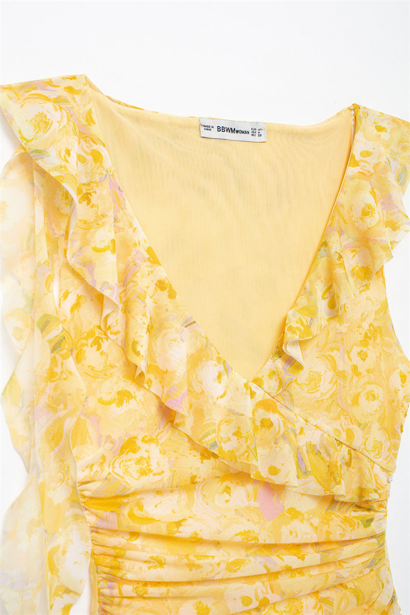 Sweet Pleated Printed Bodycon Mini Dress DP25C967