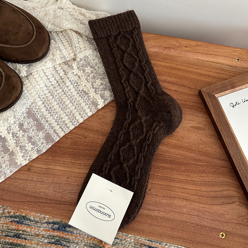 Trendy Cable Knit Wool Warm Crew Socks DP25H535