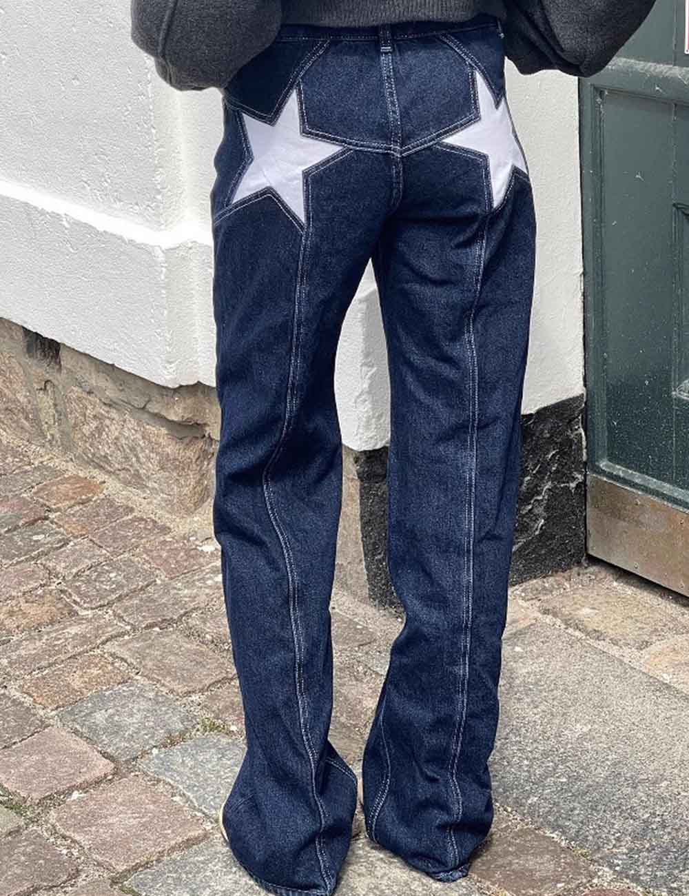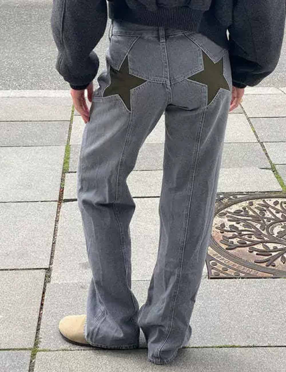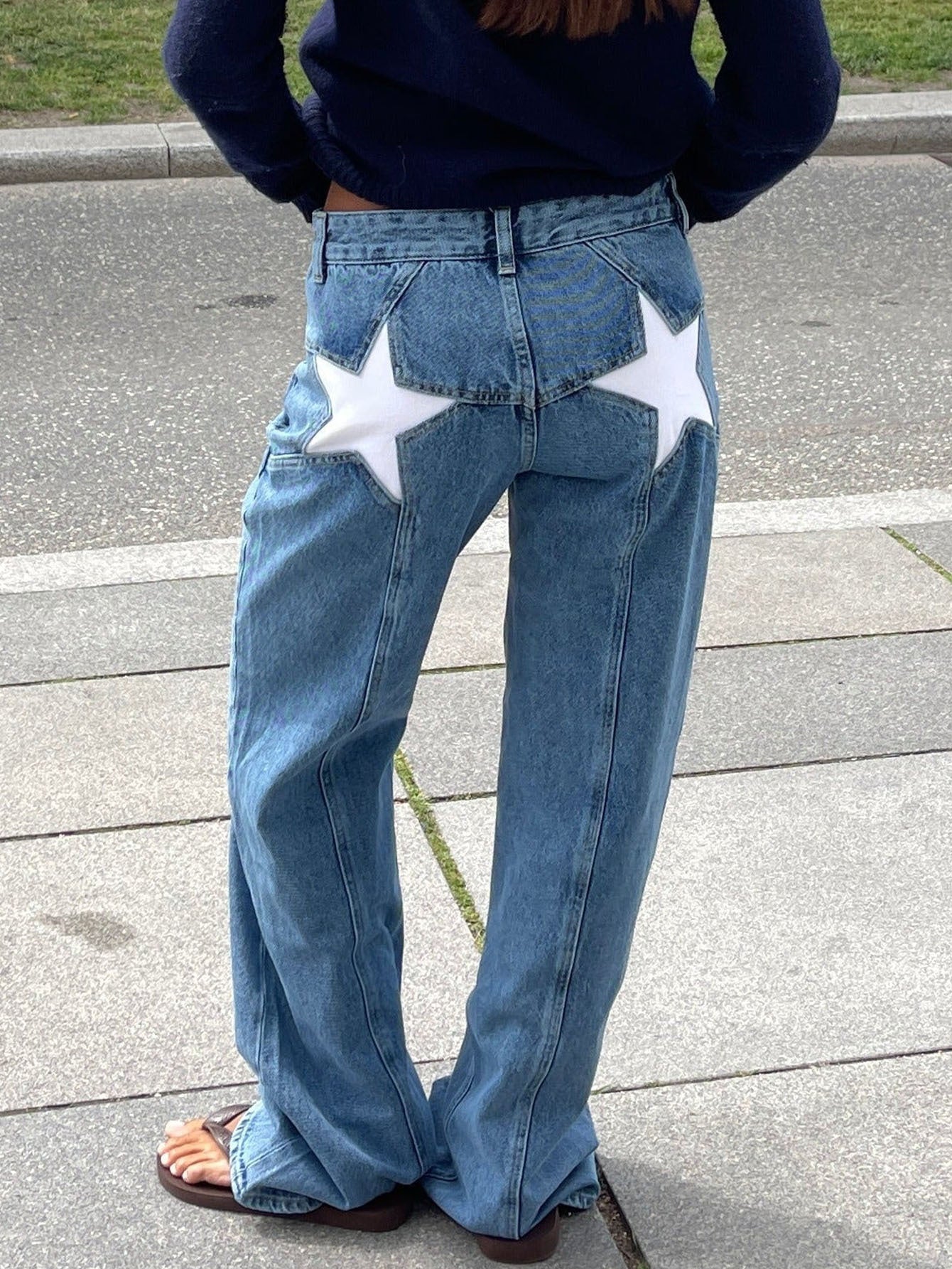 Trendy Color Contrast Splicing Star Denim Pants DP25G688