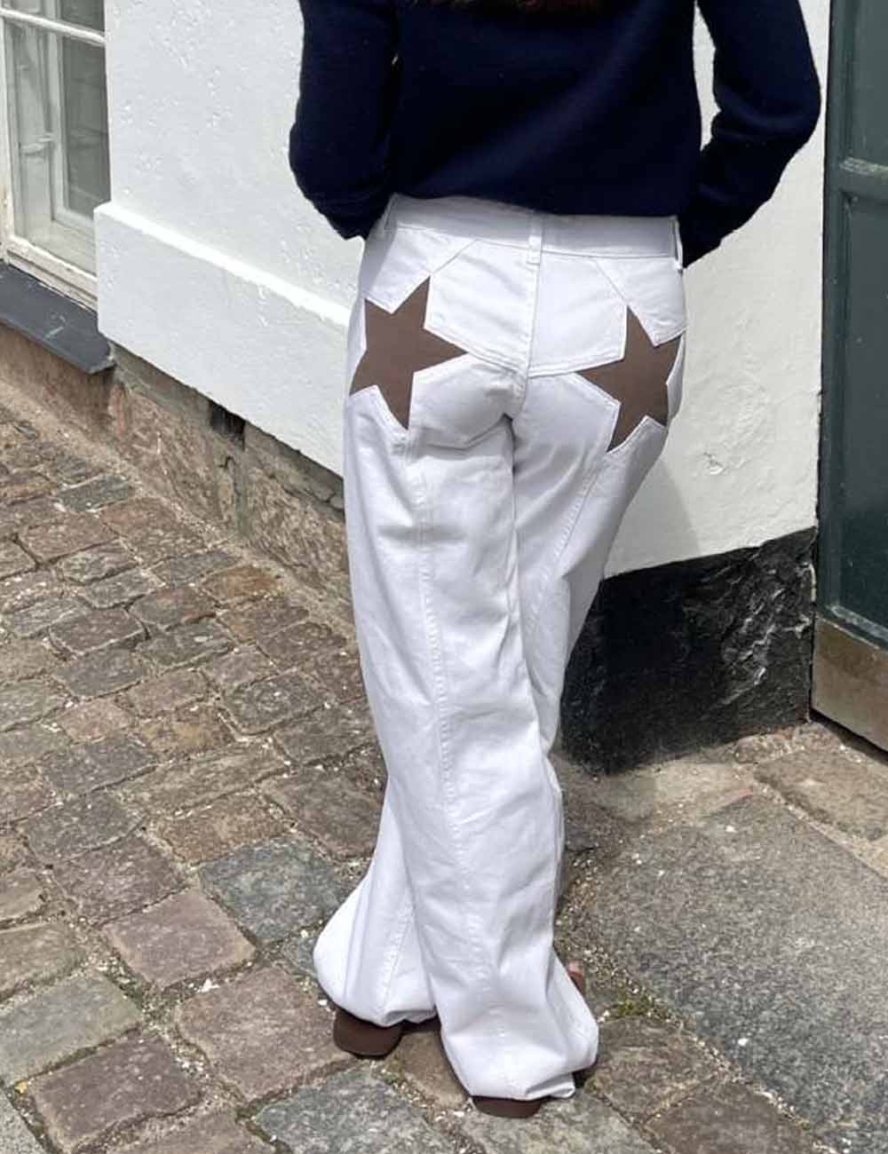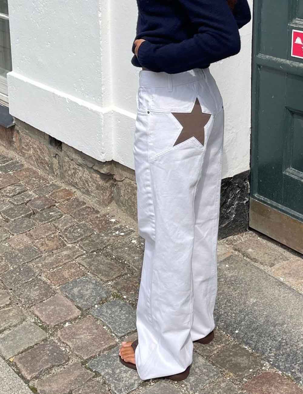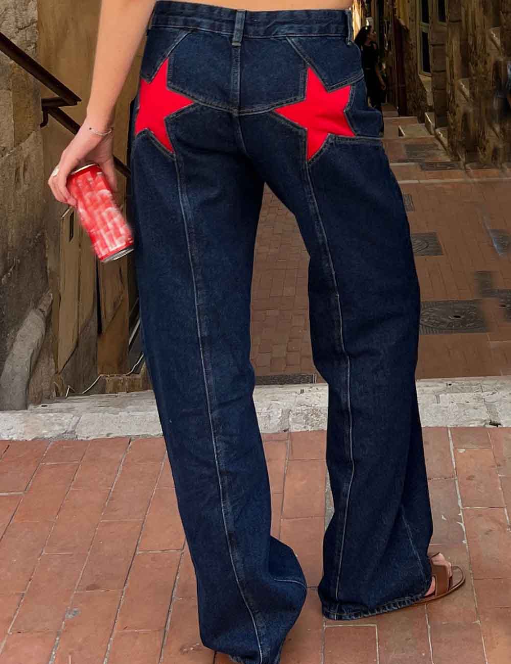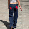 Trendy Color Contrast Splicing Star Denim Pants DP25G688