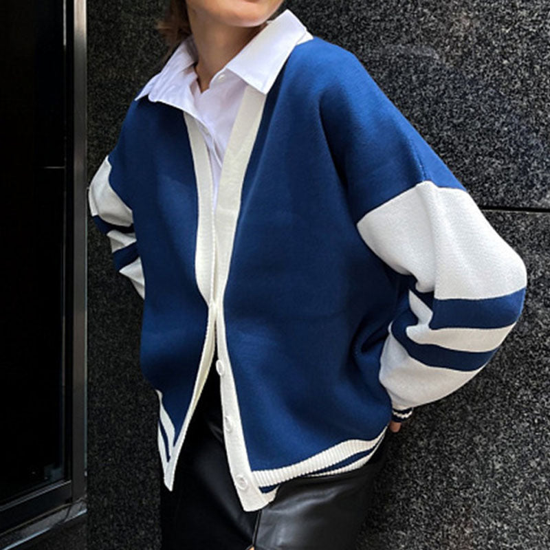 Trendy Color Contrast Striped Knit Cardigan DP25G974