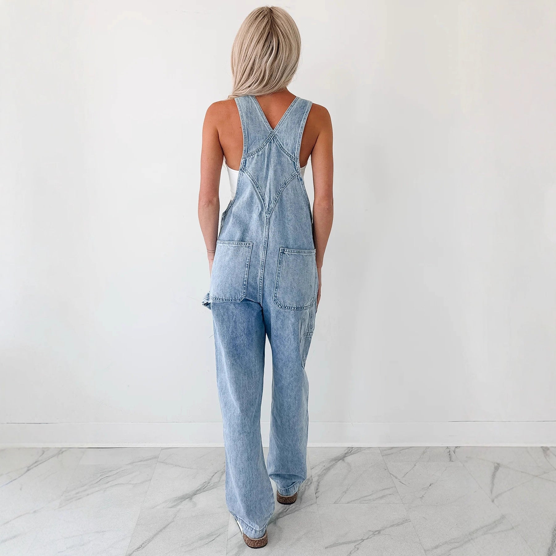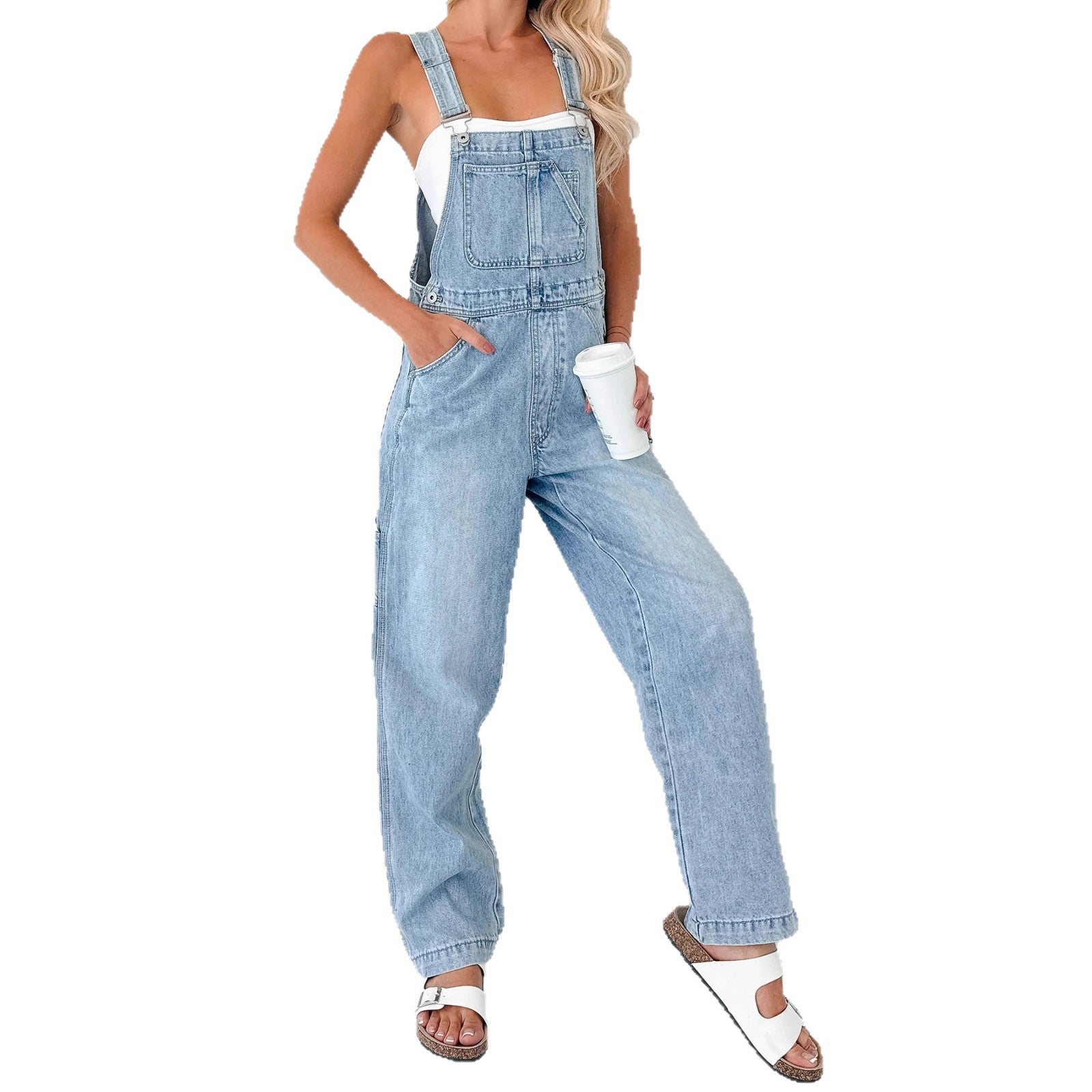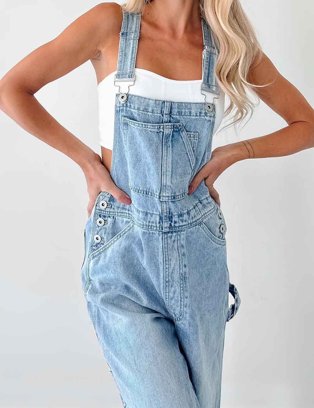 Trendy Denim Washed Straight Leg Bib Overall DP25G677