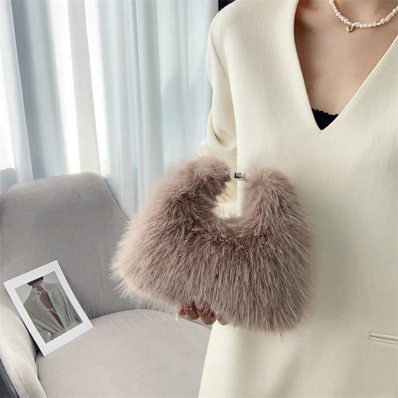Trendy Faux Fox Fur Mini Furry Evening Bag DP25G657