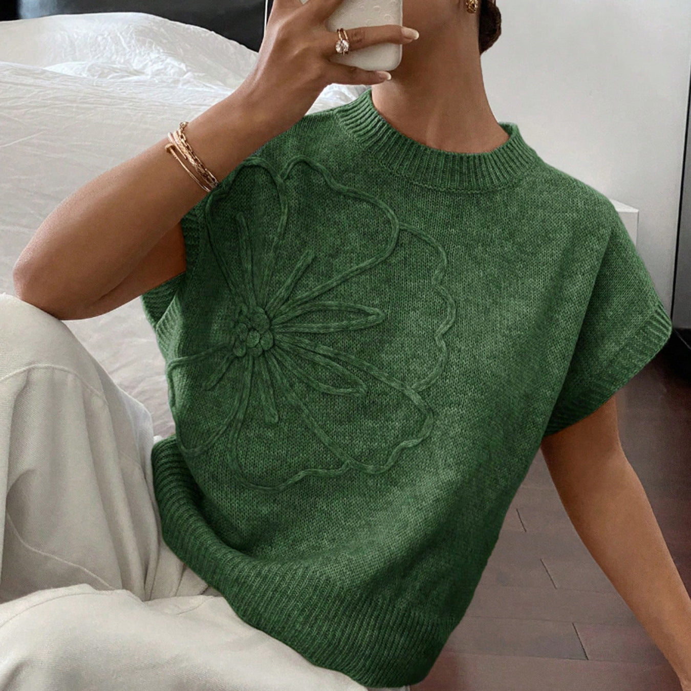 Trendy Floral Embroidered Sleeveless Knit Top DP25E530
