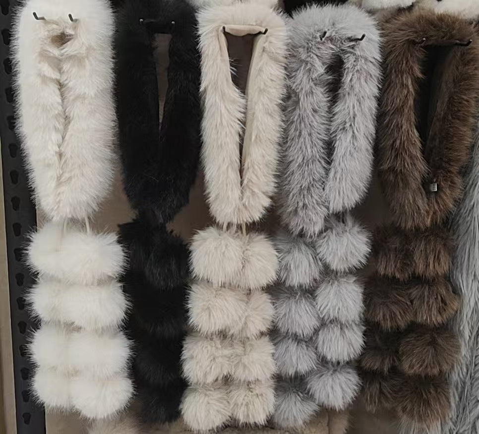 Trendy Fuzzy Faux Fur Pom Soft Scarf DP25H685