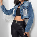 Trendy Lapel Collar Tassel Cropped Denim Jacket DP25E802