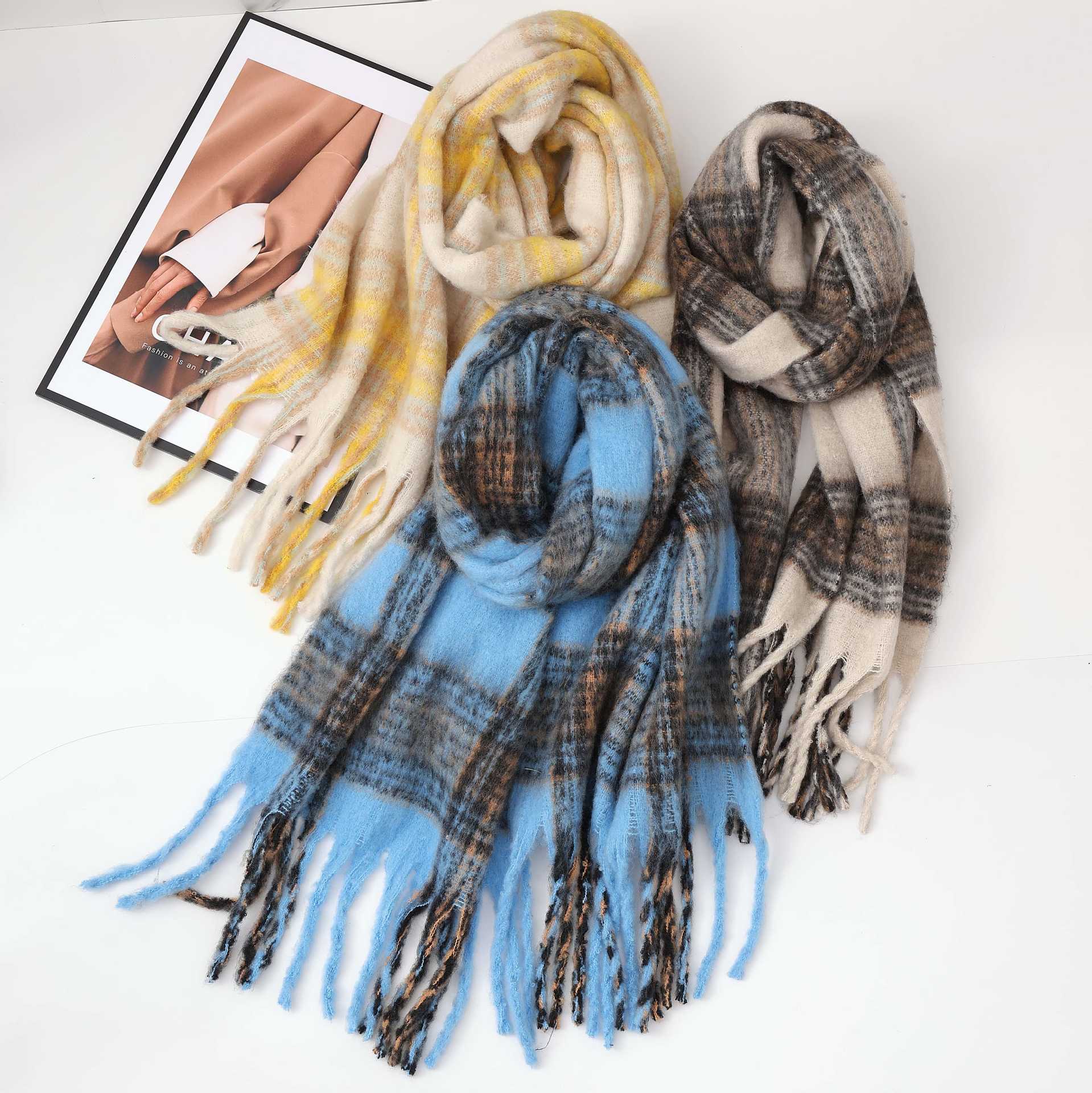 Trendy Plaid Thicken Warm Tassel Knit Scarf DP25H410