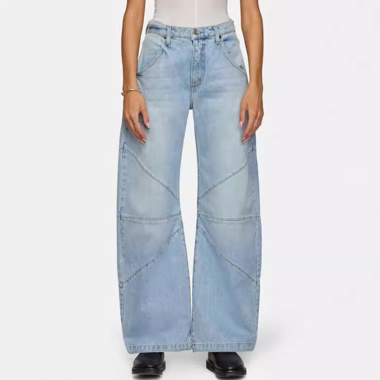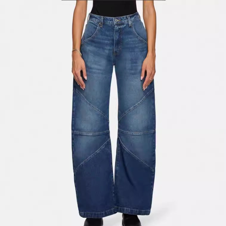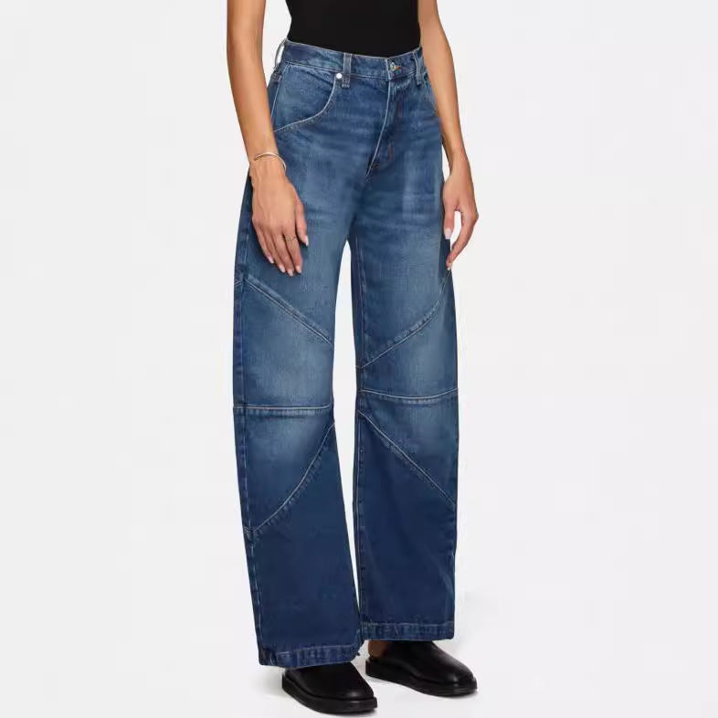 Trendy Pleated Splice Straight Leg Baggy Jeans DP25G696