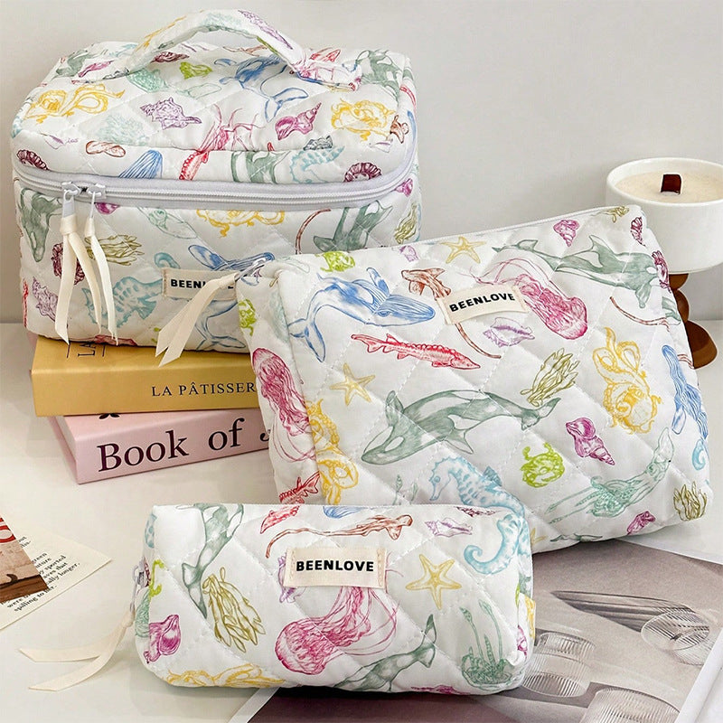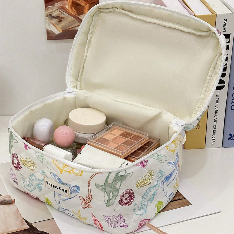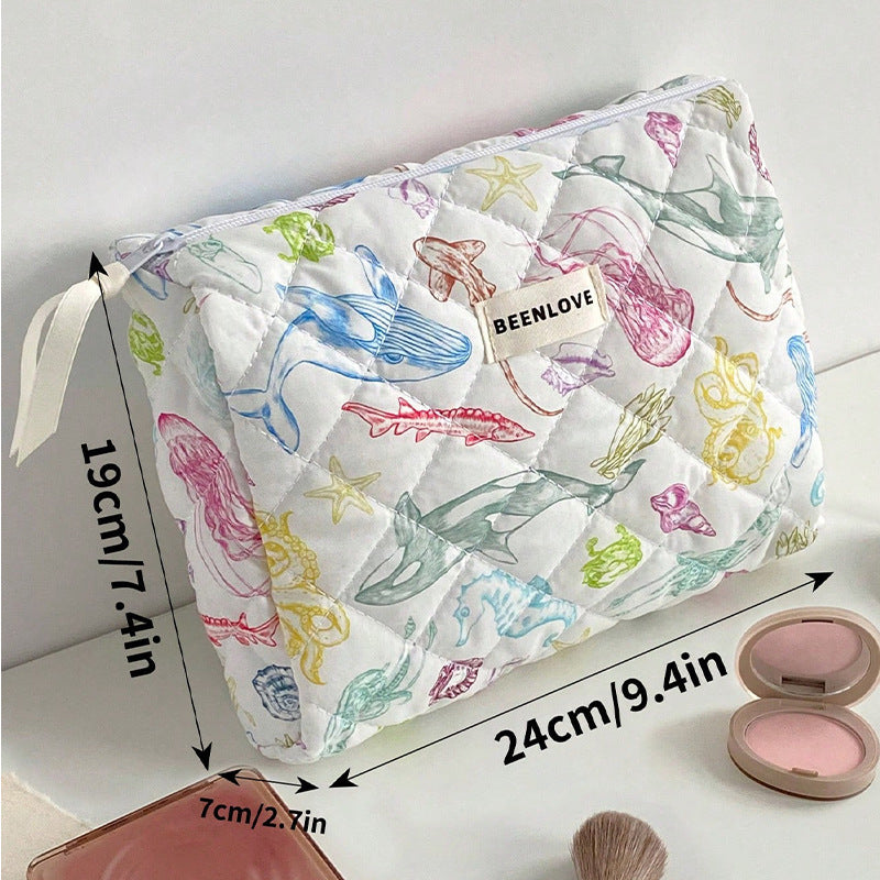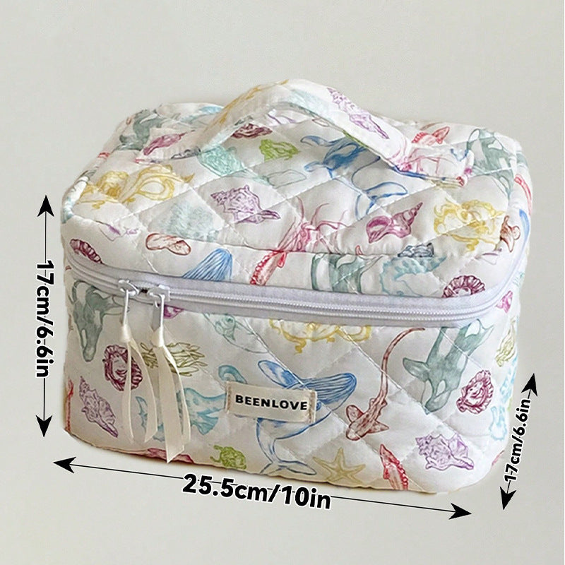 Trendy Print Quilted Large Capacity Makeup Bag DP25H572