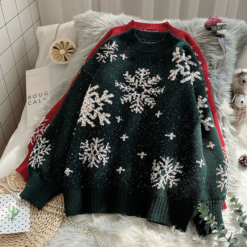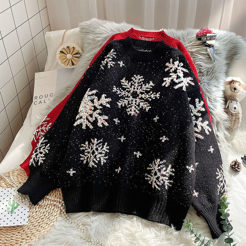Trendy Snowflake Slouchy Pullover Knit Sweater DP25H432