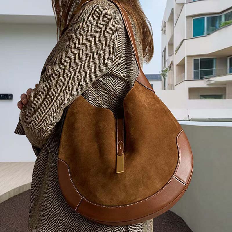 Trendy Suede Splicing Leather Tote Crescent Handbag DP25G638