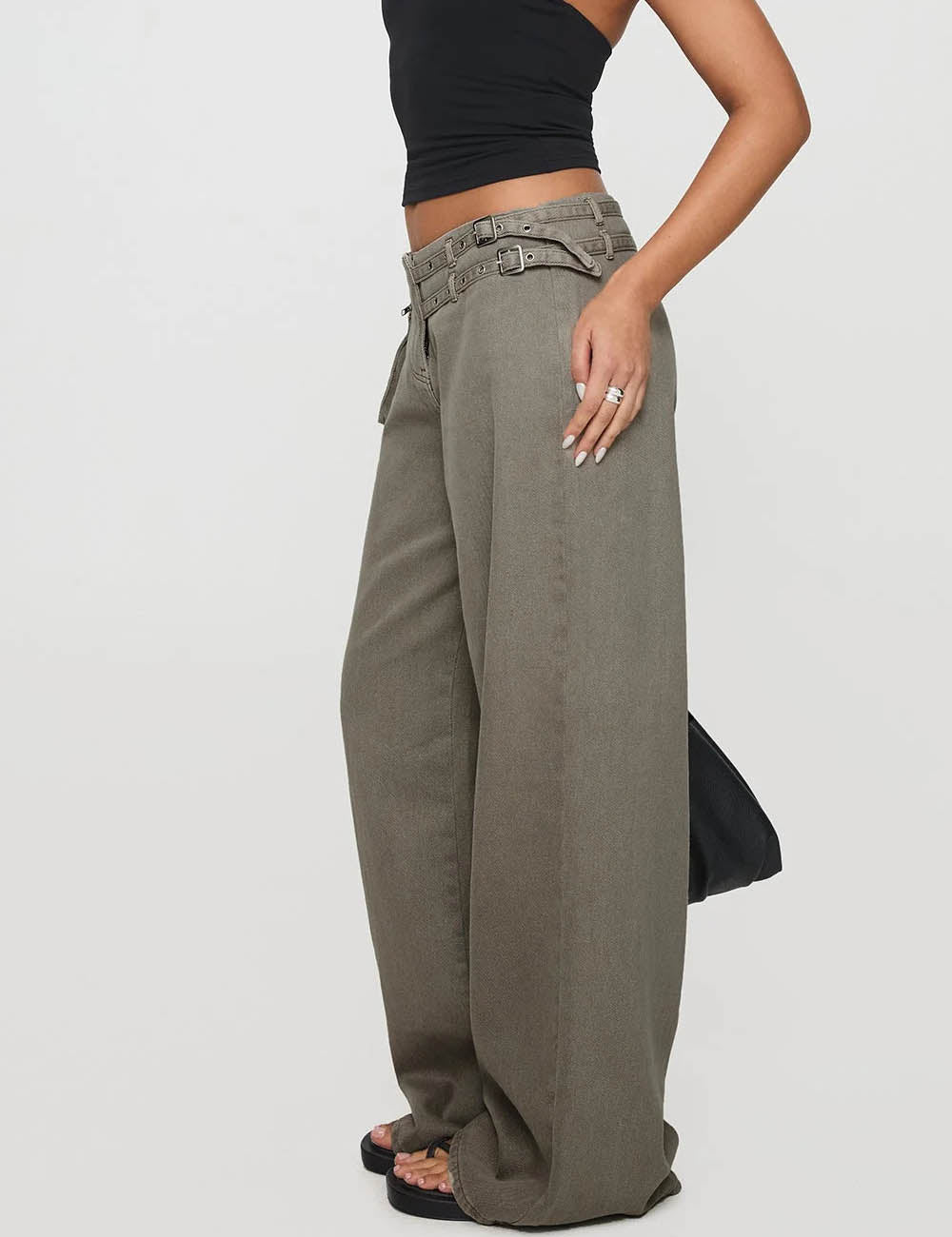 Trendy Wide Leg Adjustable Buckle Loose Pants DP25G681