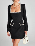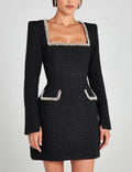 U-Neck Elegant Pearl Tweed Mini Dress DP25E674