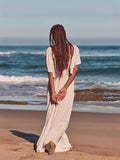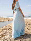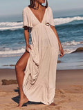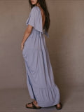 V-Neck Backless Short Sleeves Maxi Dress DP25B841