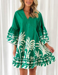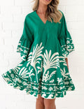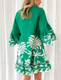 V-Neck Floral Print Flare Sleeves Mini Dress DP25E659