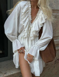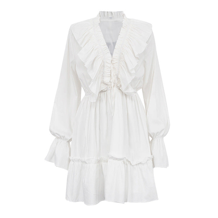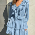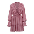 V-Neck Flounce Solid Color Mini Dress DP25B406