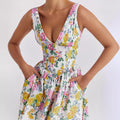 V-Neck Slim Sleeveless Floral Print Midi Dress DP25B504