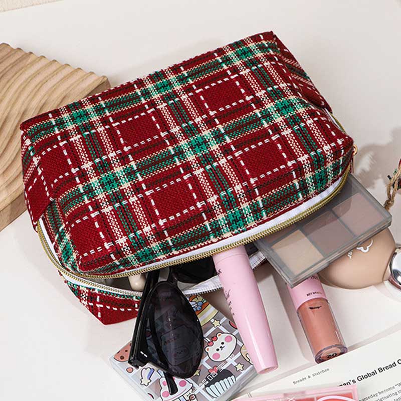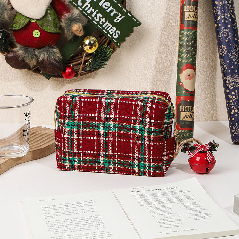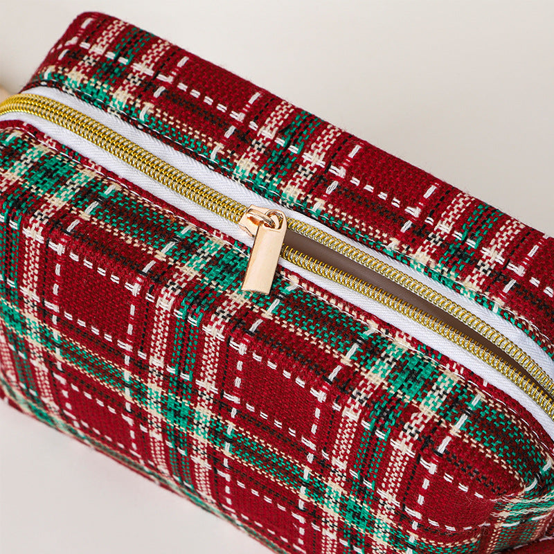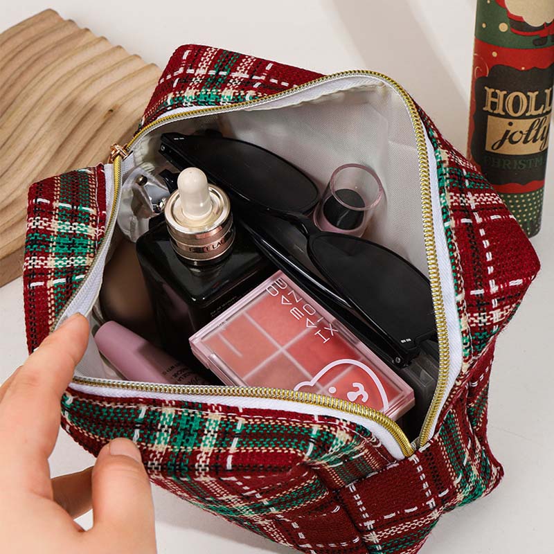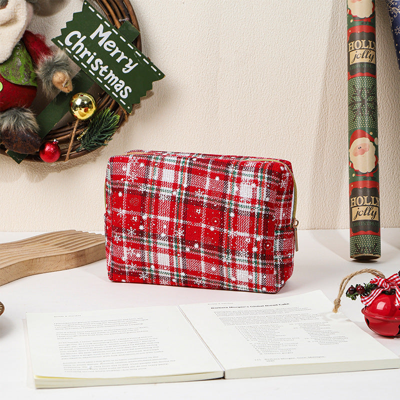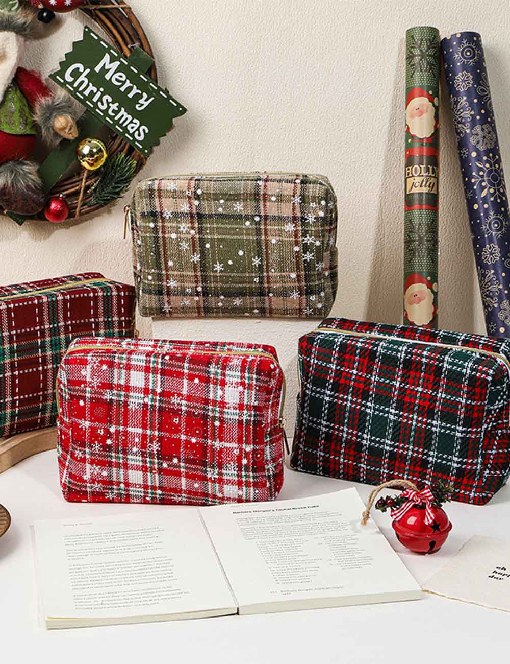 Vintage Christmas Plaid Snowflake Makeup Bag DP25H476