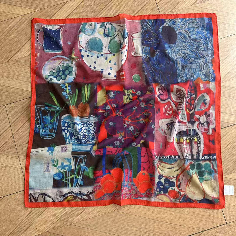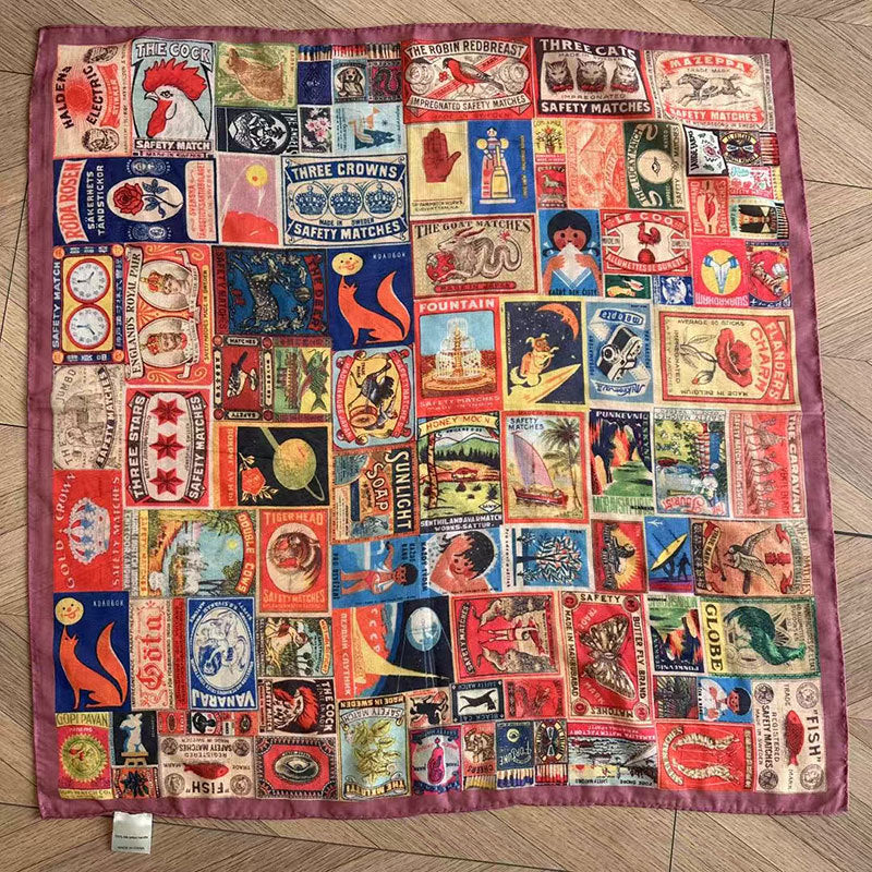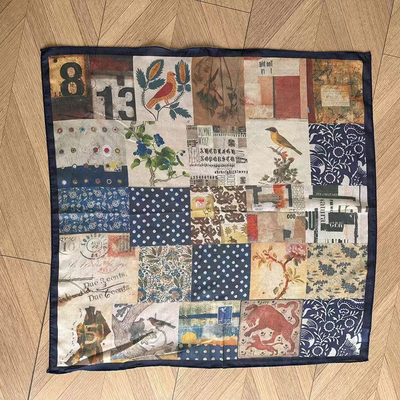 Vintage Collage Print Silk Square Scarf DP25G461
