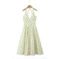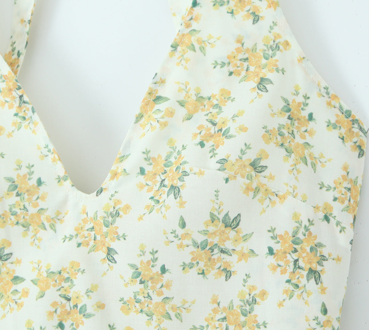 Vintage Floral Halter V-Neck Maxi Dress DP25C975