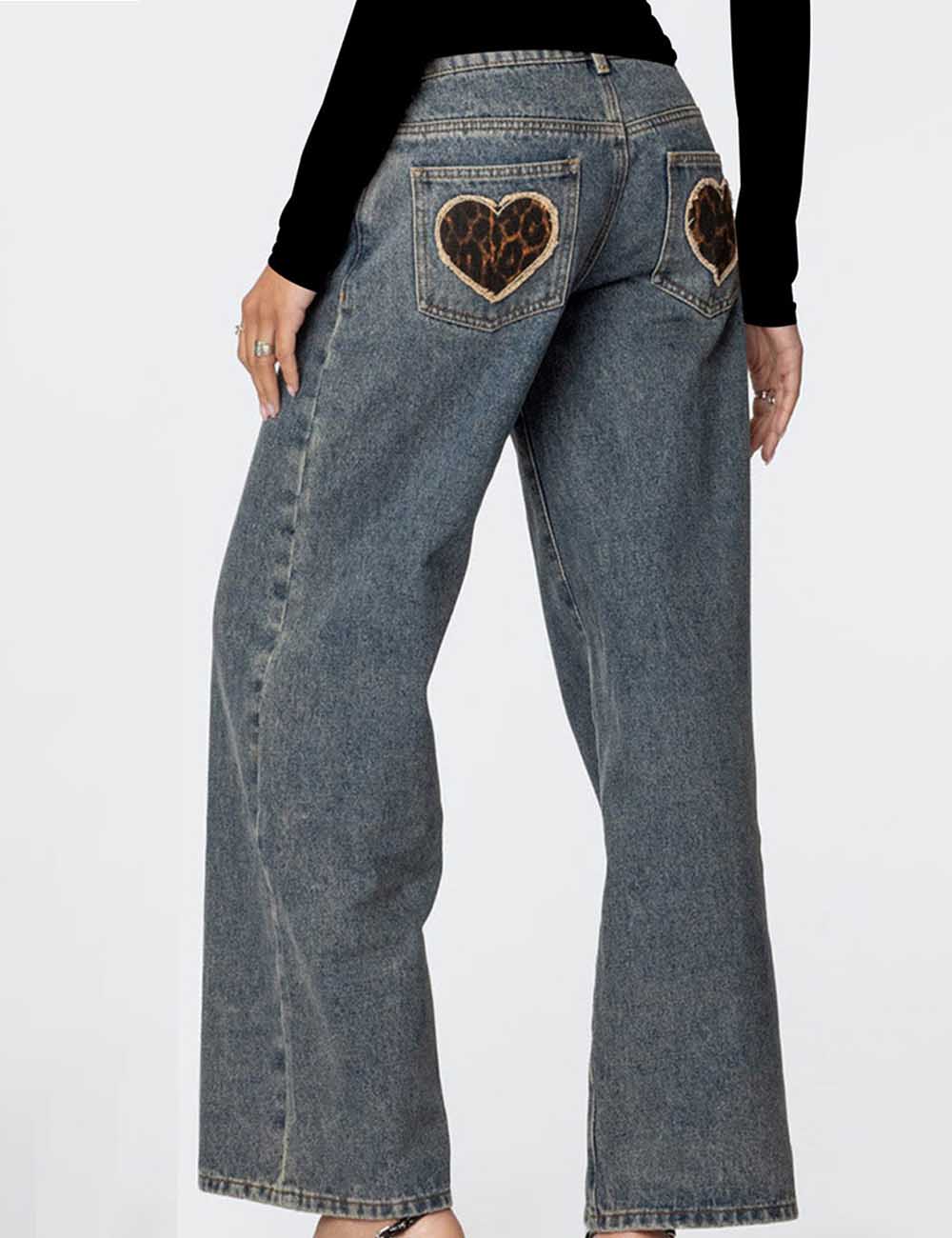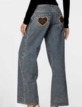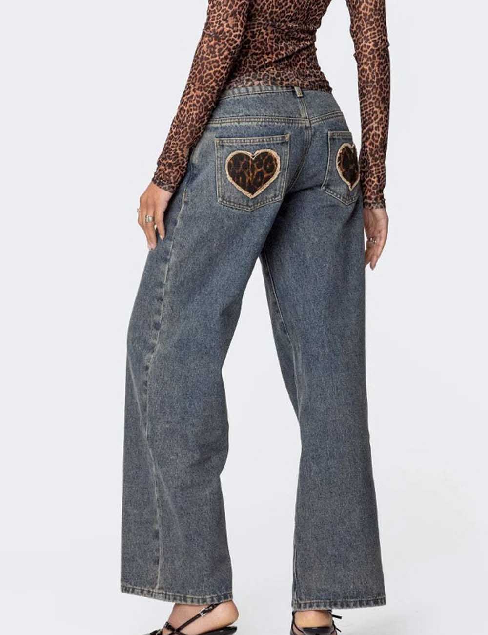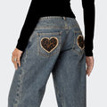 Vintage Heart Leopard Print Straight Leg Jeans DP25G916