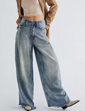 Vintage High Waist Wide Leg Frayed Jeans DP25G903