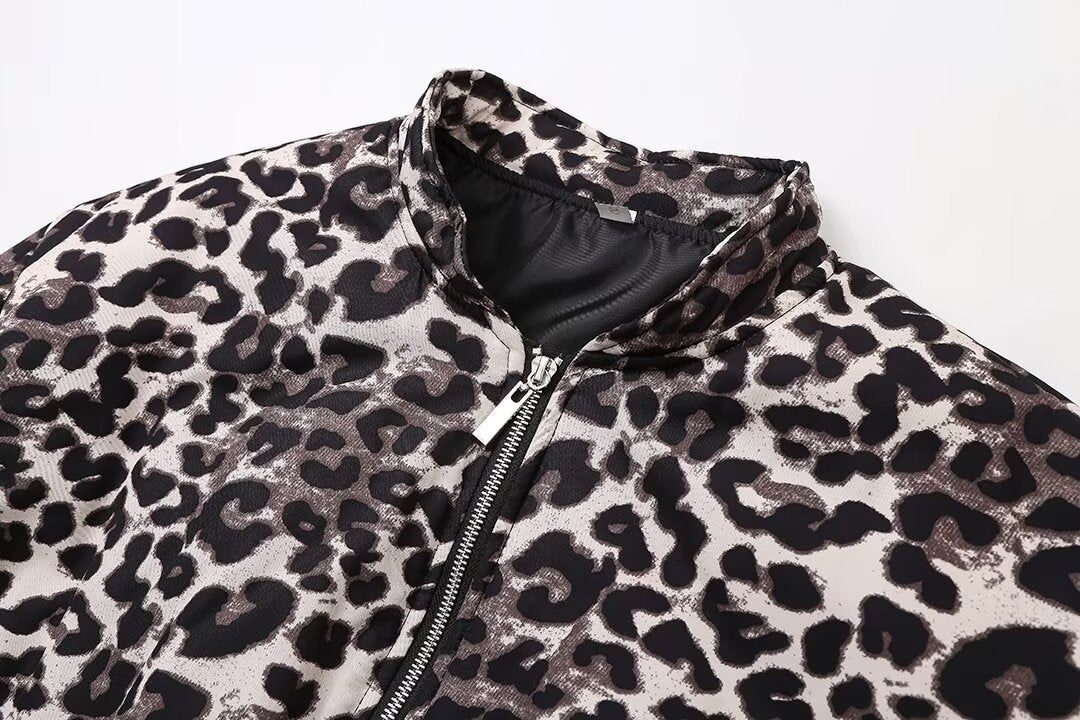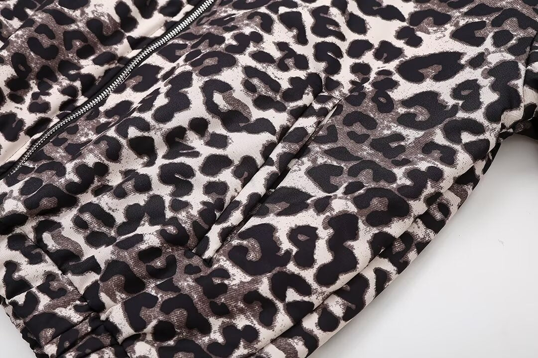 Vintage Leopard Print Zip-Up Winter Jacket DP25G995