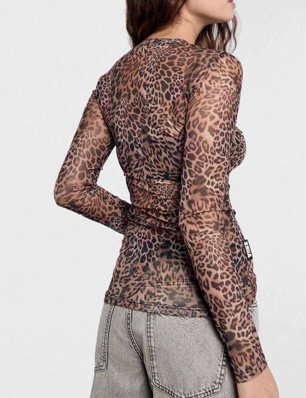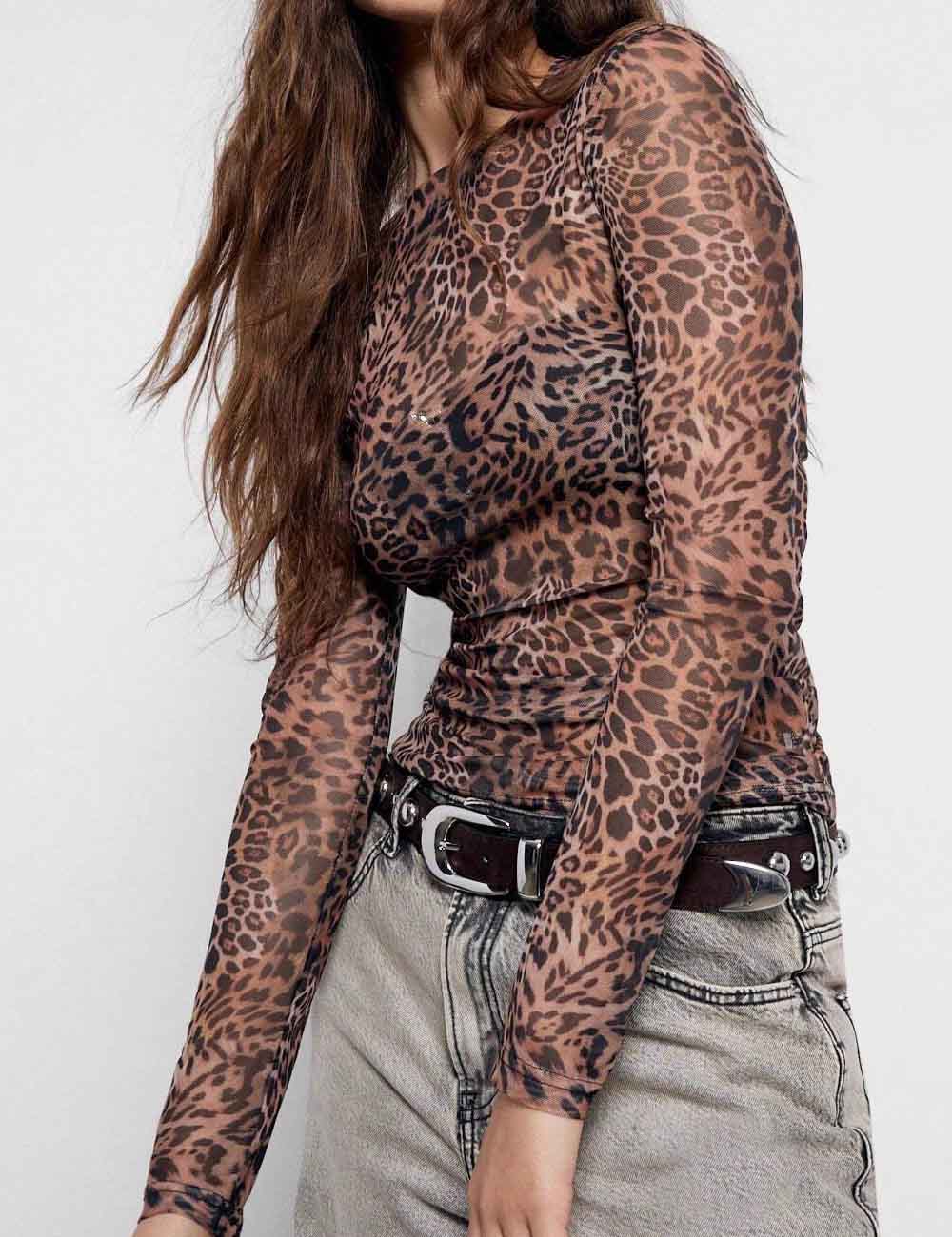 Vintage Mesh Leopard Print Slim Blouse DP25H402