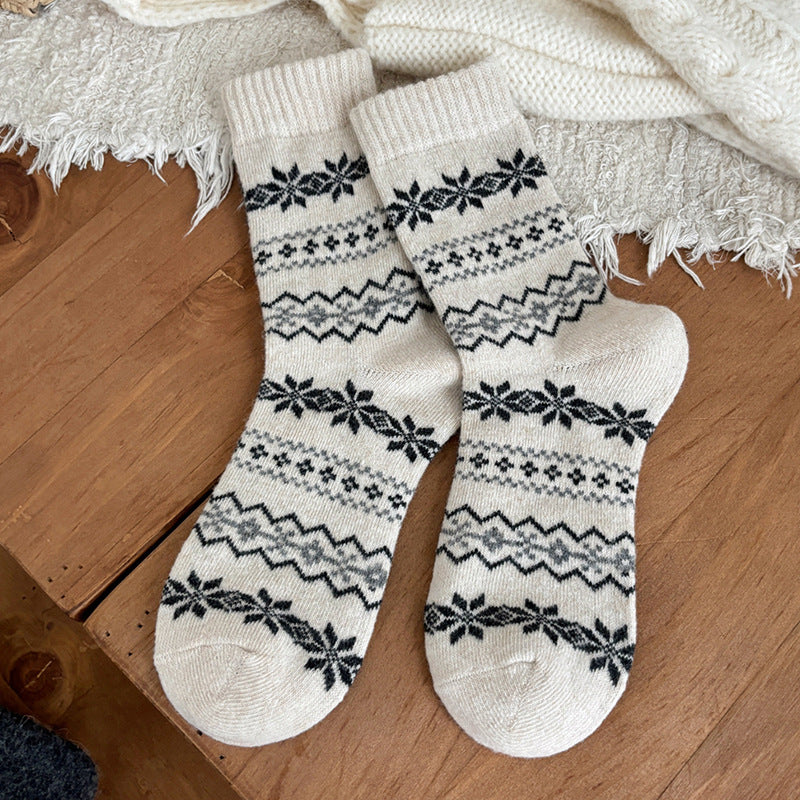 Vintage Snowflake Print Thicken Warm Crew Socks DP25H530