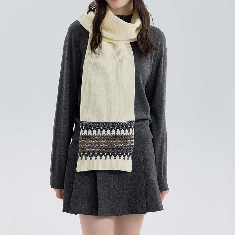 Vintage Soft Warm Fair Isle Knit Scarf DP25H409