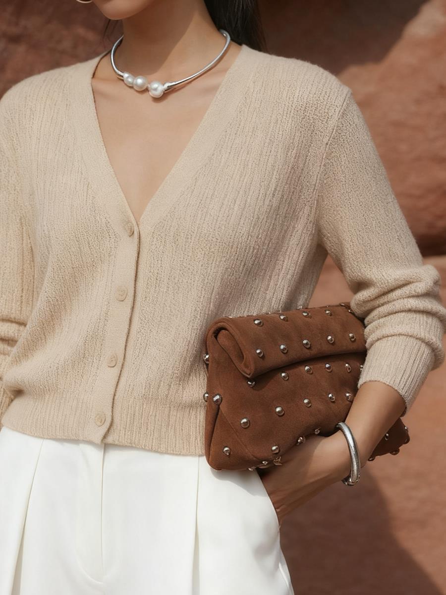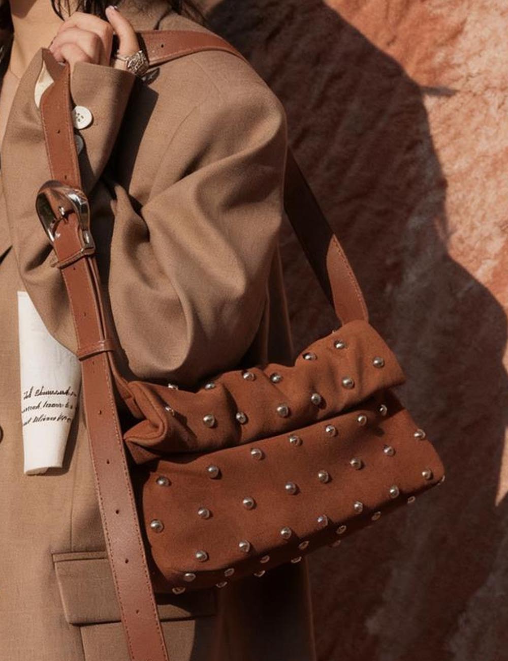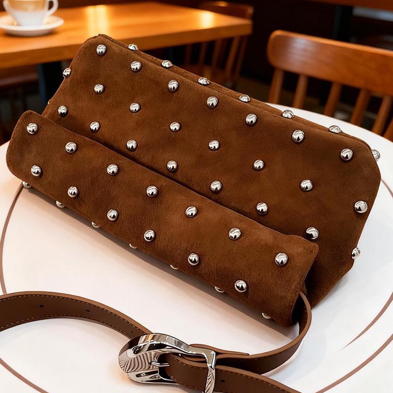 Vintage Studded Suede Handbag Shoulder Bag DP25H605