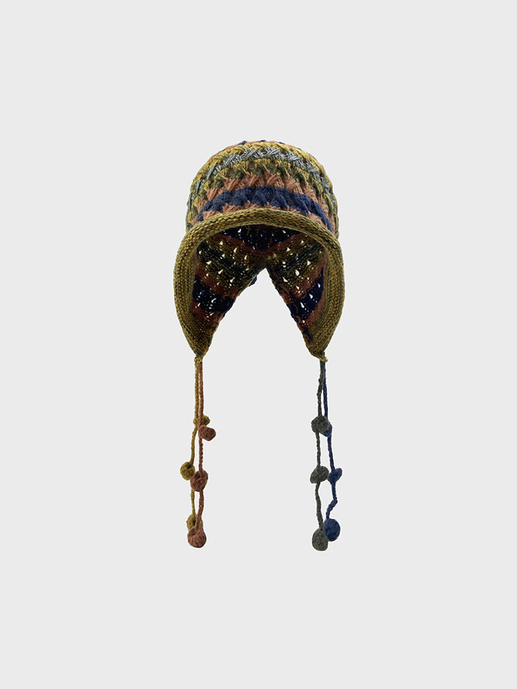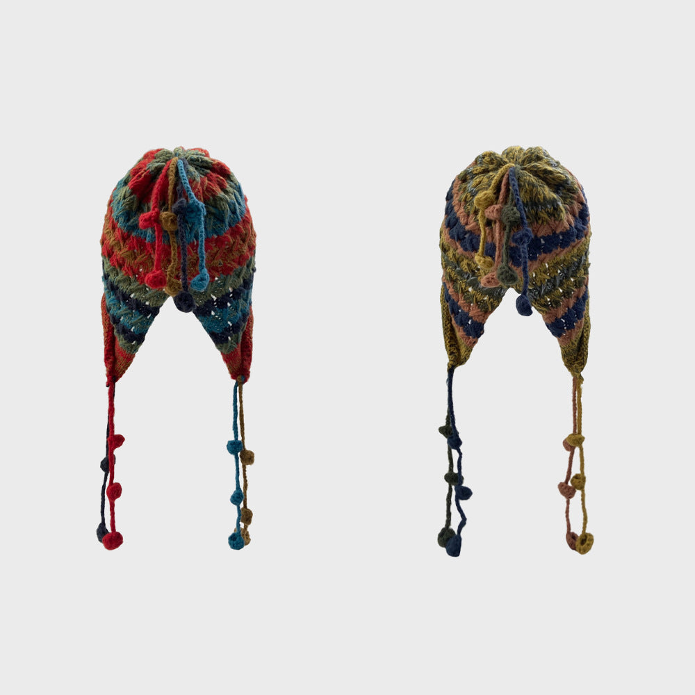Vintage Tassel Pom Ear Flap Beanie Knit Hat DP25G728