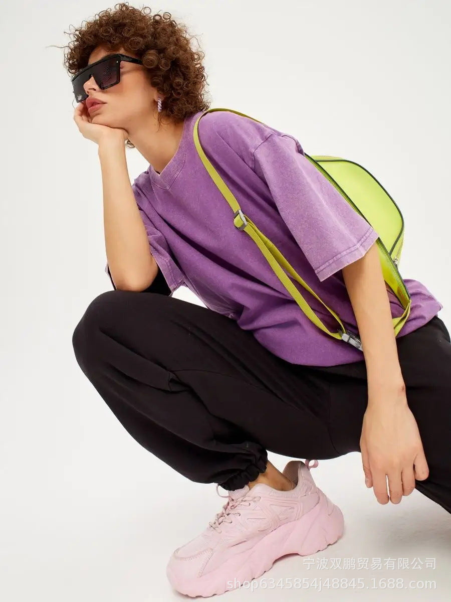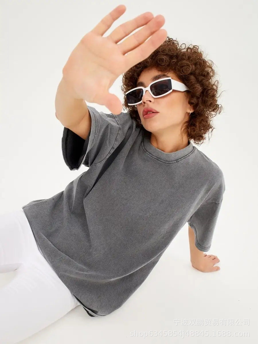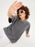 Washed Distressed Loose Short Sleeves Top DP25B453
