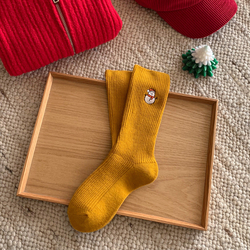 Winter Cartoon Embroidered Soft Christmas Crew Socks DP25G760