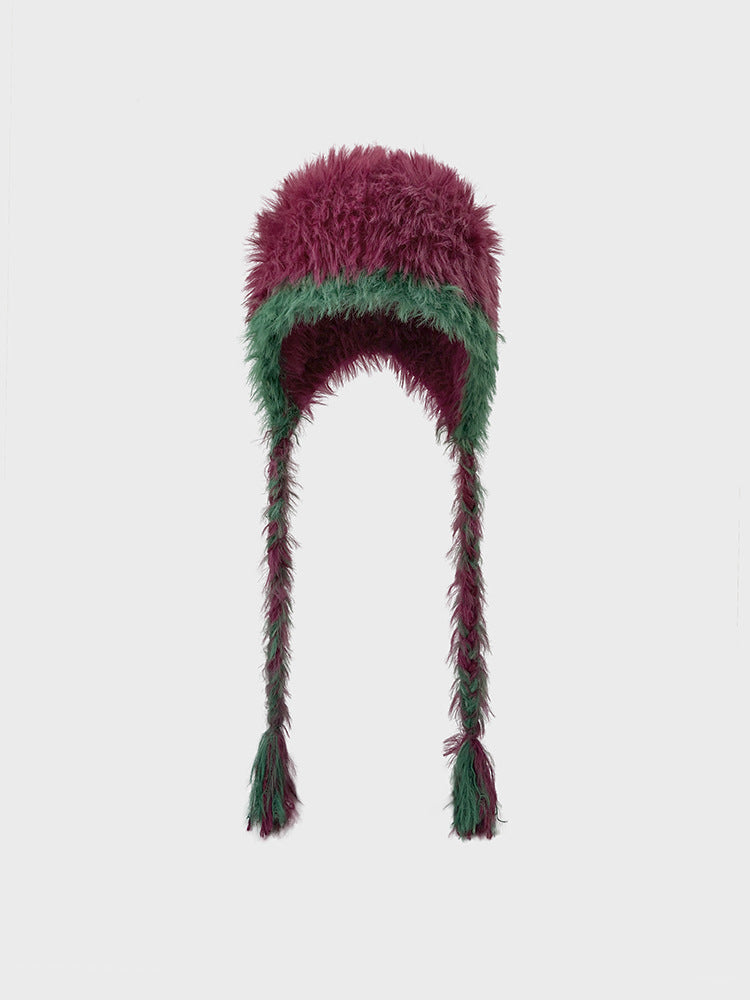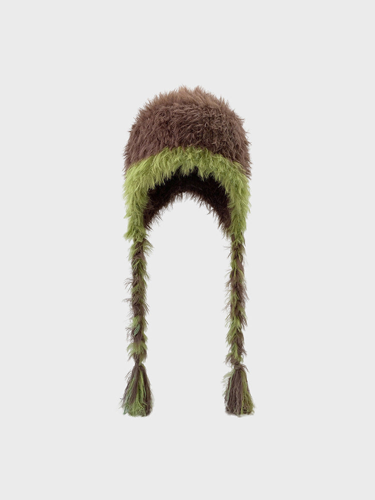 Winter Fuzzy Long Braided Ear Flaps Beanie Hat DP25G722