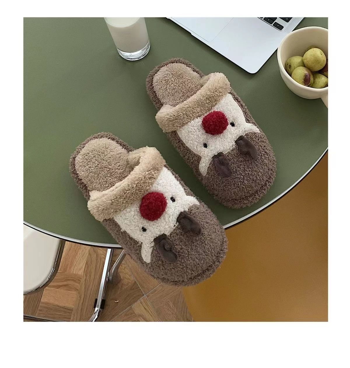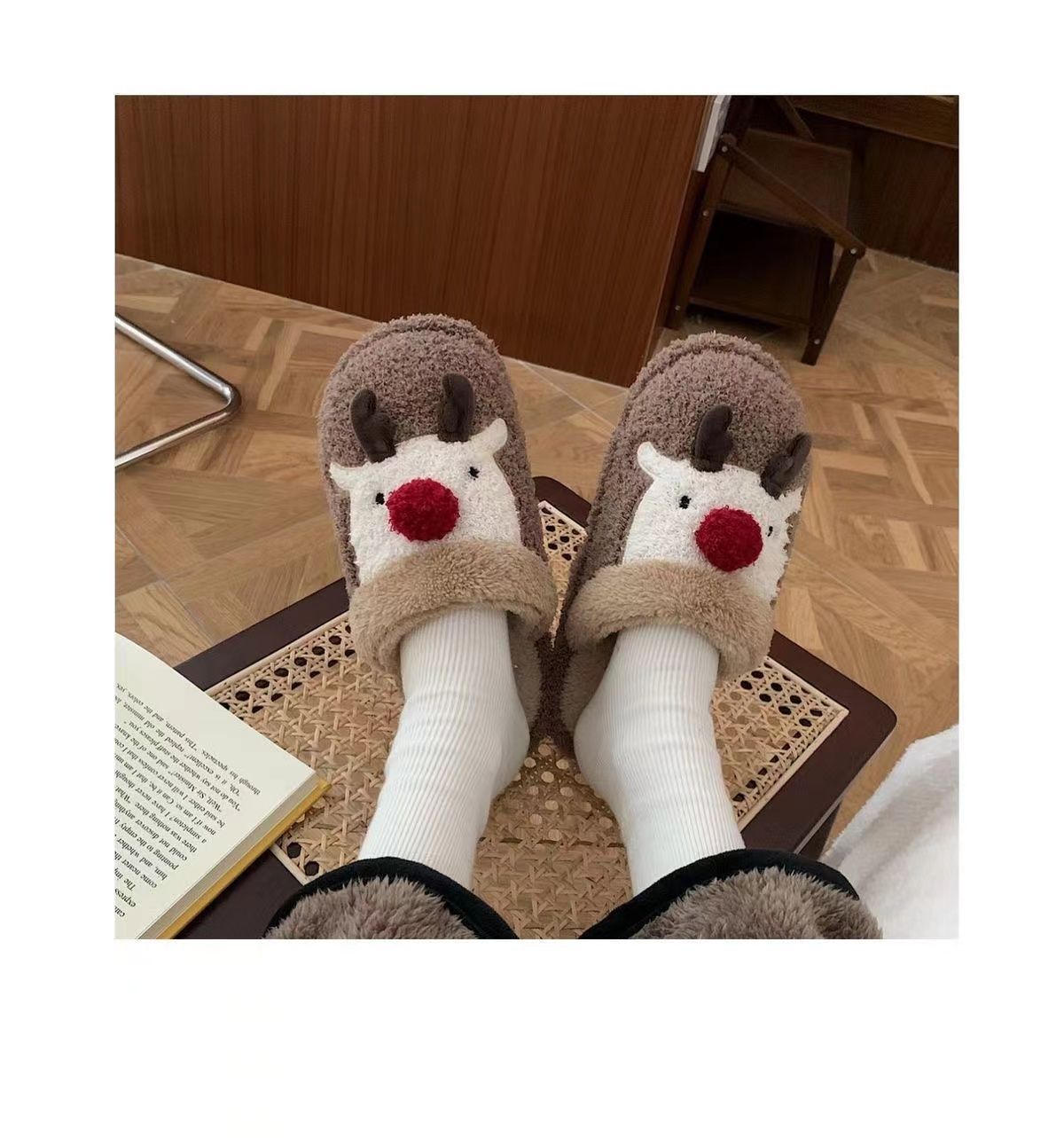 Winter Fuzzy Plush Reindeer Indoor Slippers DP25H486