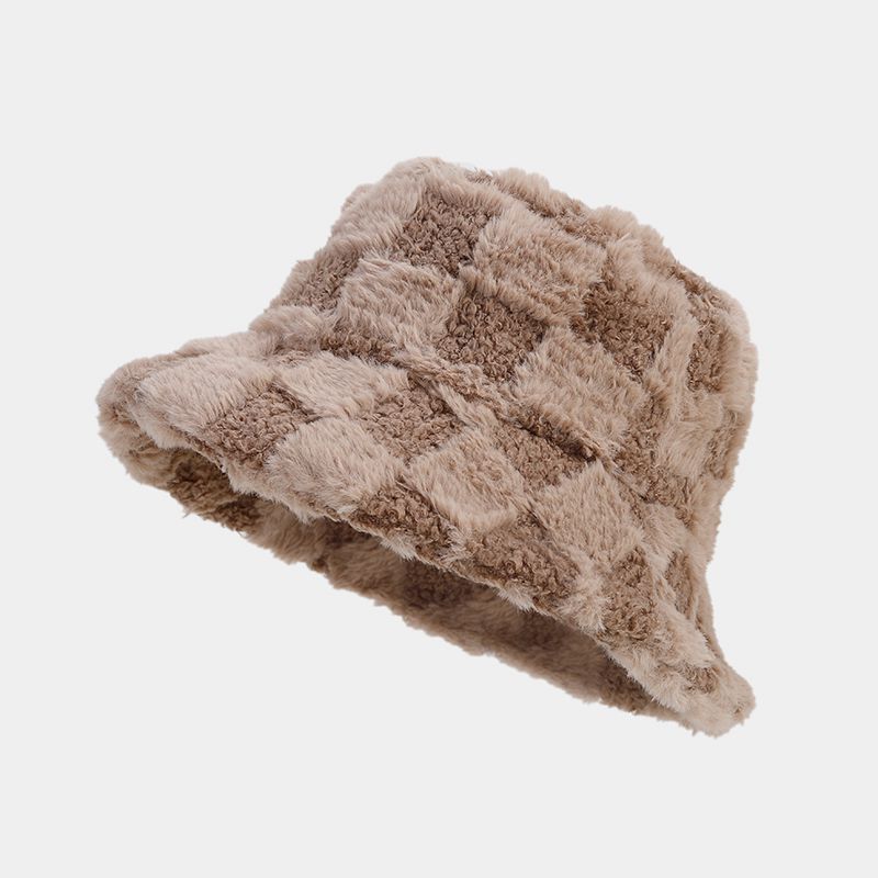 Winter Fuzzy Trendy Plaid Thick Warm Bucket Hat DP25G746