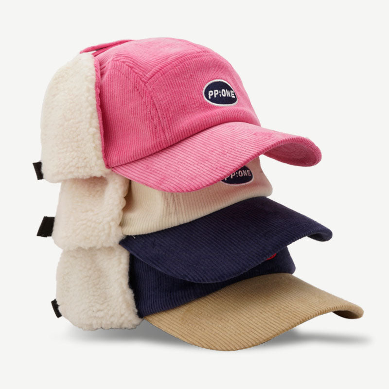 Winter Hat With Ear Flap Corduroy Baseball Cap DP25G723