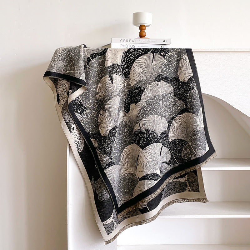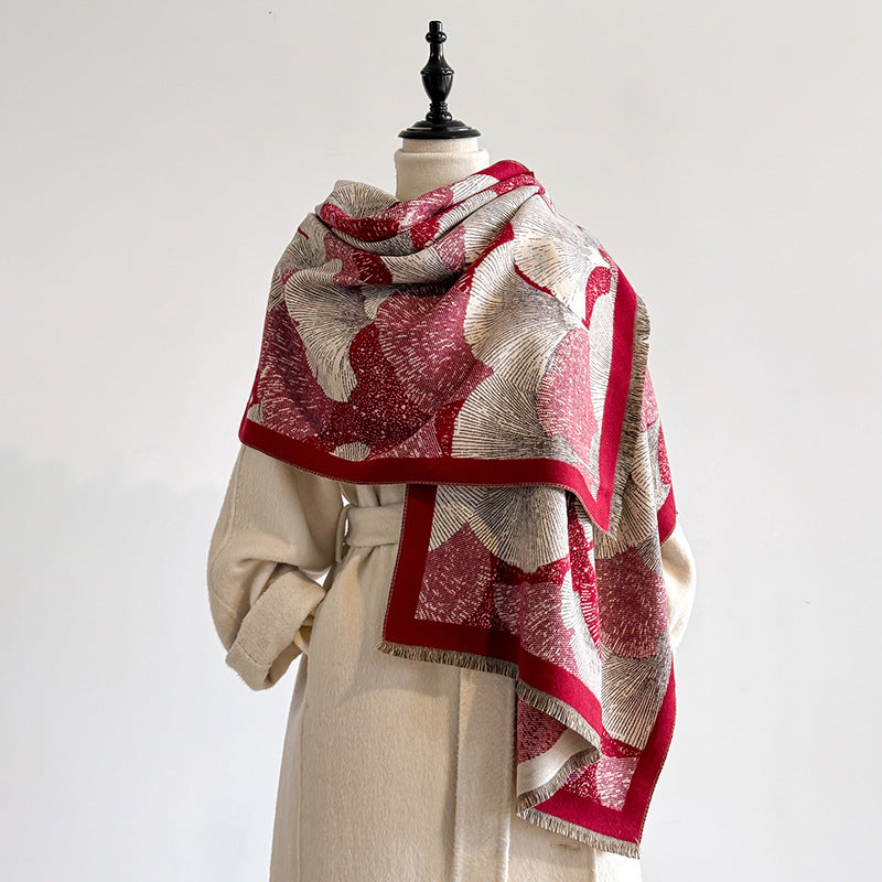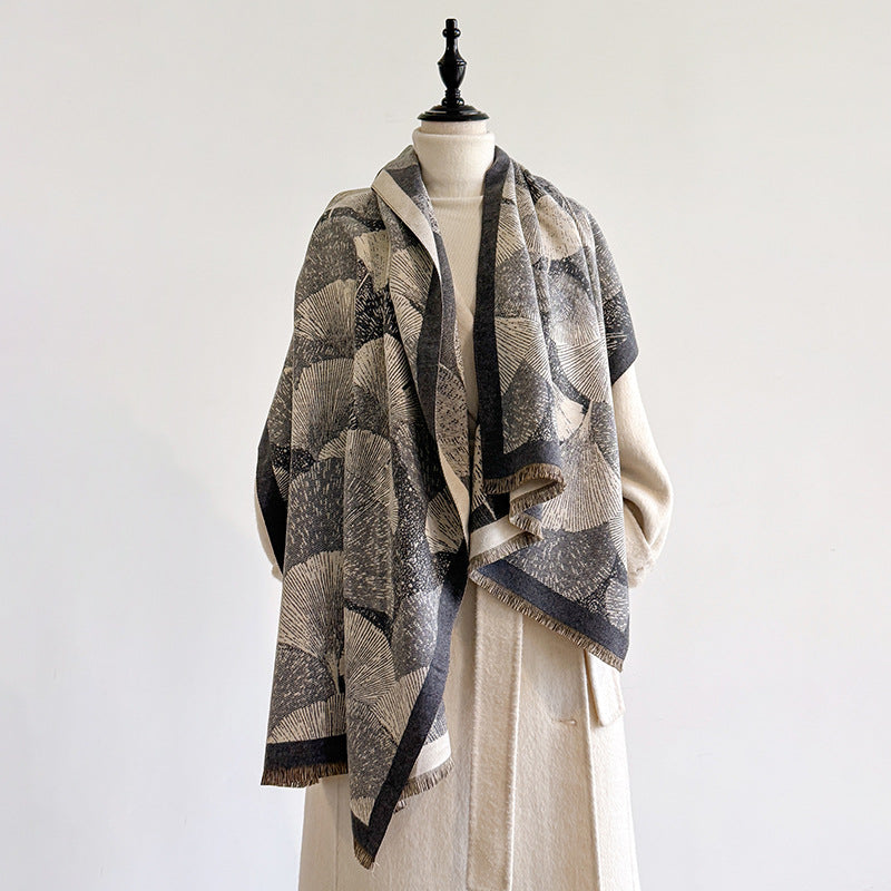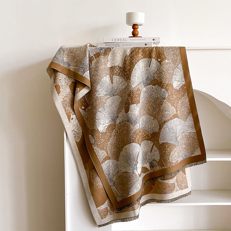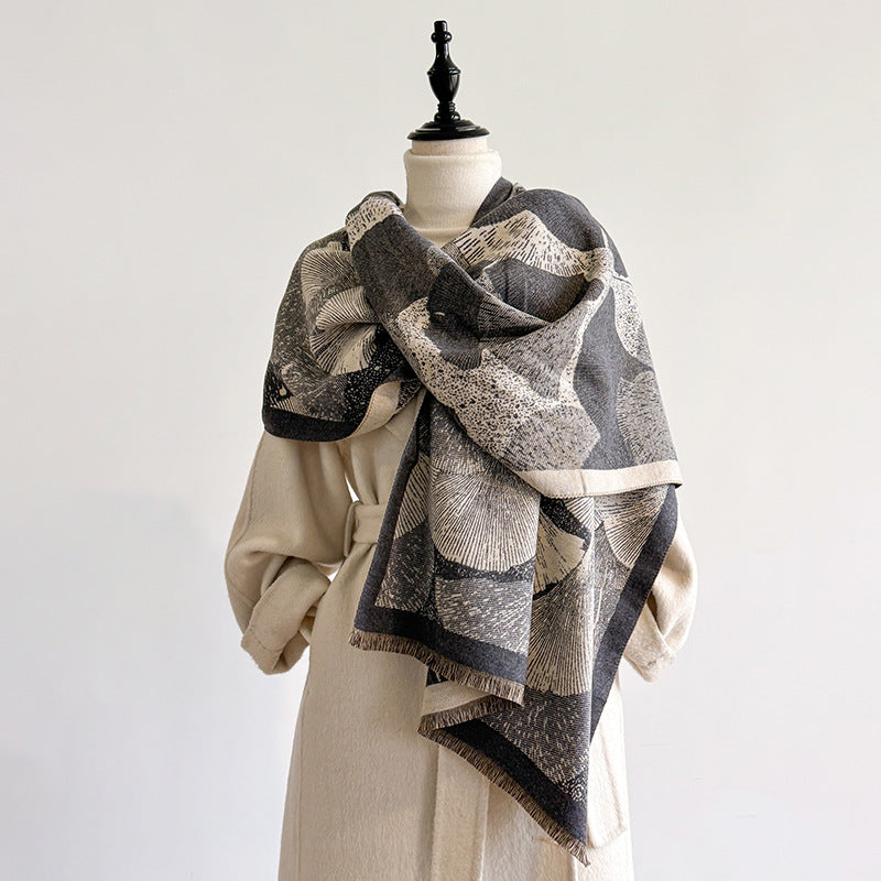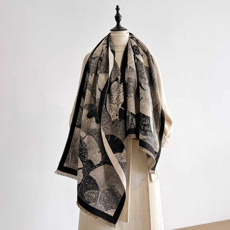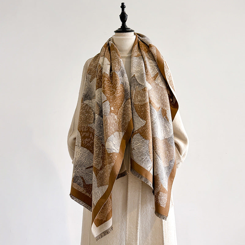 Winter Leaf Print Faux Cashmere Warm Scarf DP25H678