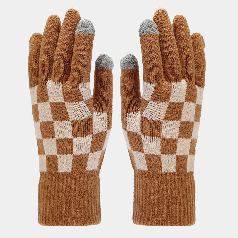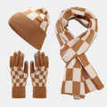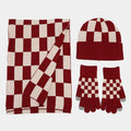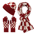 Winter Plaid Warm Hat Scarf Gloves Outdoor Sets DP25G720