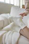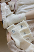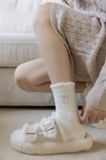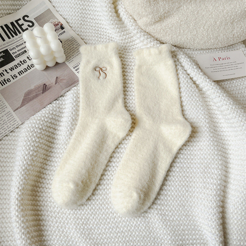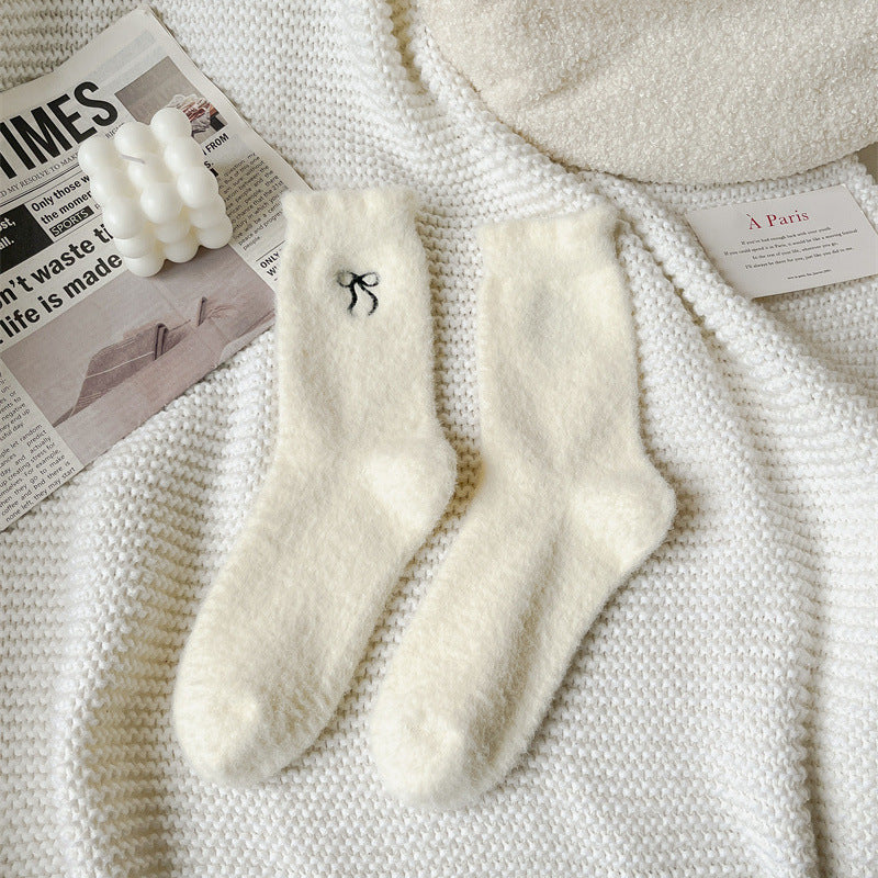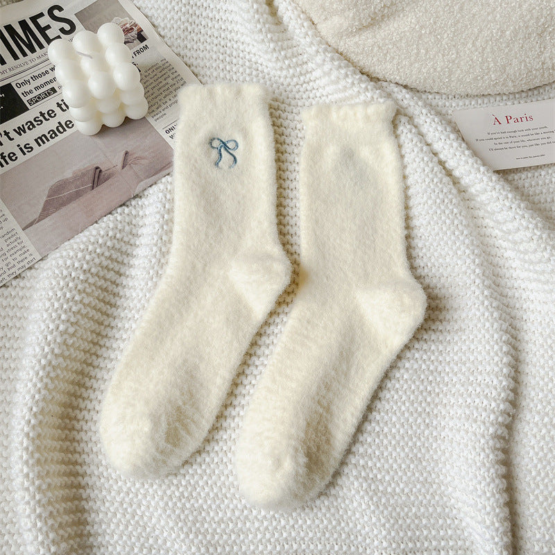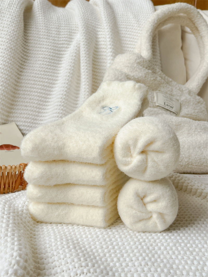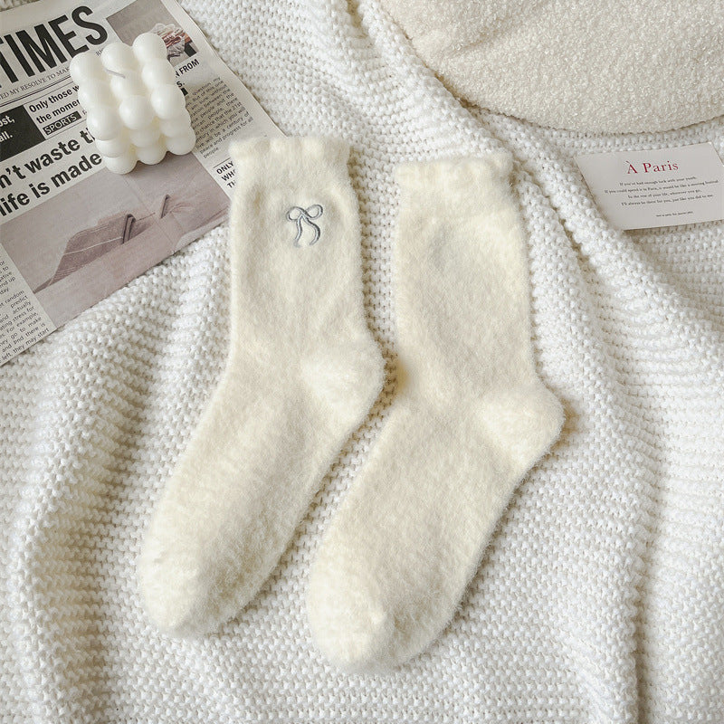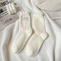 Winter Plush Solid Color Bow Embroidery Crew Socks DP25H517