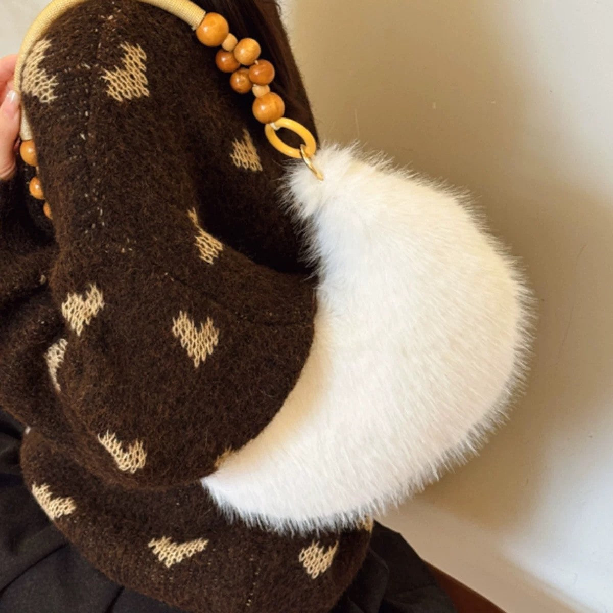 Winter Solid Soft Fluffy Underarm Handbag DP325G660