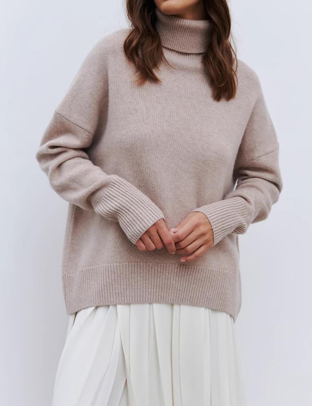 Winter Turtleneck Oversized Ribbed Knit Sweater DP25G946