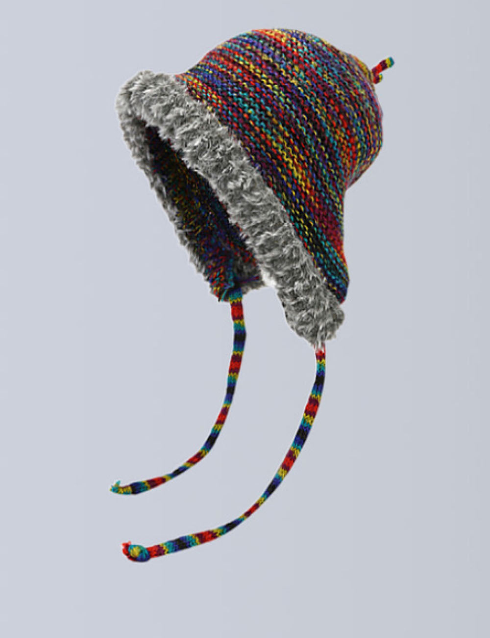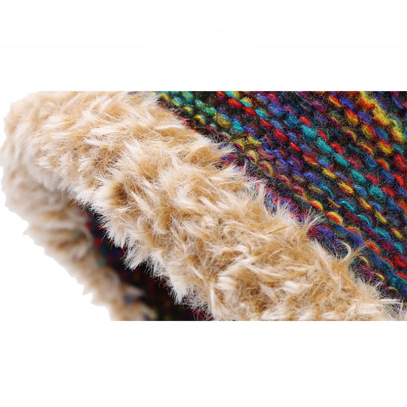 Winter Warm Plush Rainbow Striped Knit Beanie DP25H720
